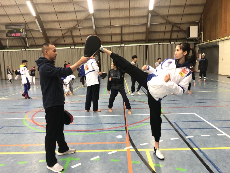 A: ให้หยุดฝึกทันที เช็กว่าฟอร์มเรามีการ “ล็อกเข่า” ตอนเตะหรือหมุนตัวแรงเกินไปไหม ถ้าปวดต่อเนื่องควรพักและปรึกษาผู้ฝึกสอนหรือแพทย์กีฬา ห้ามฝืนซ้อมซ้ำ ๆ เพราะอาจกลายเป็นอาการเรื้อรังได้